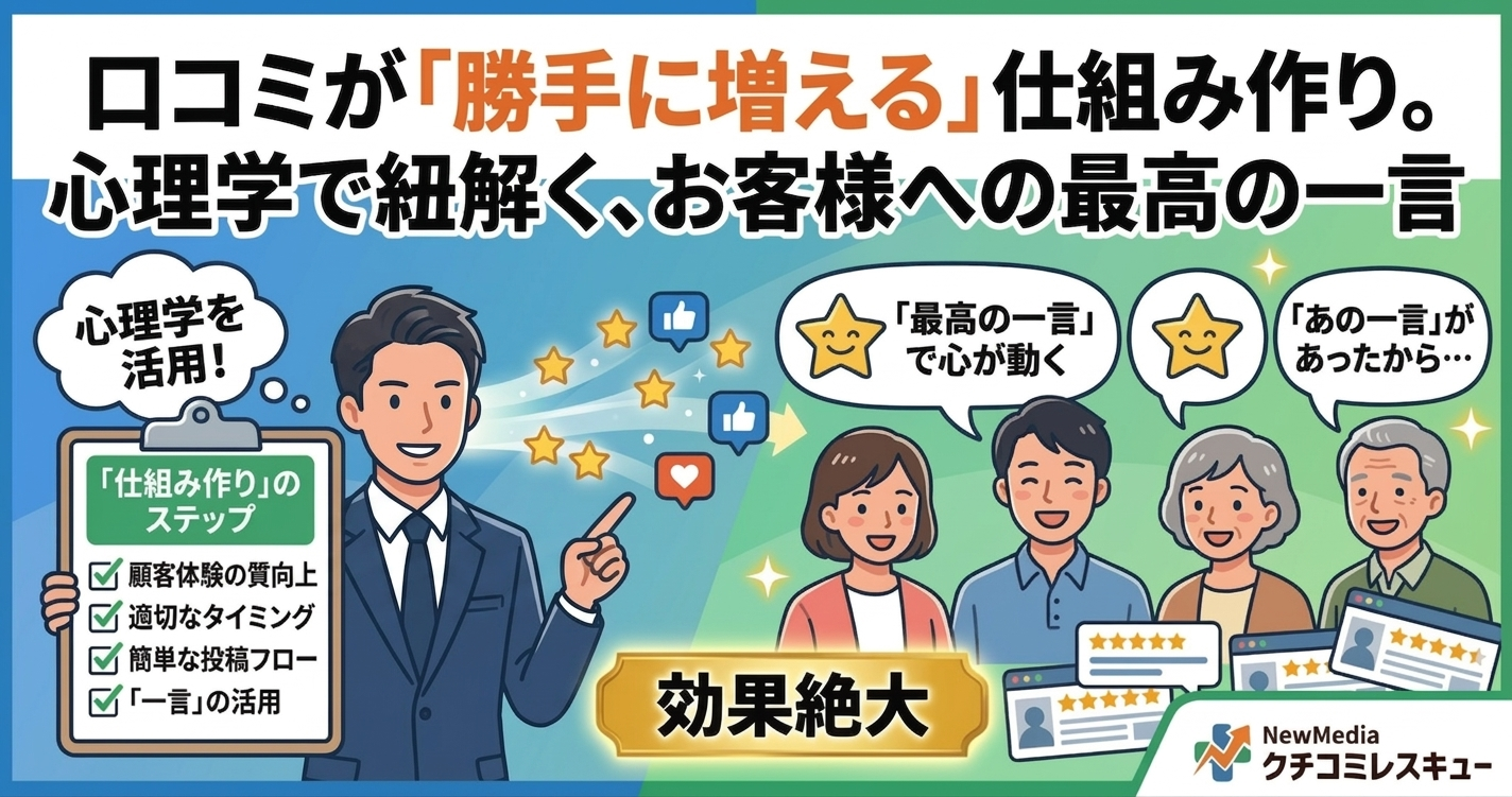 今回は、心理学に基づいた「口コミが自然に増える仕組み」と、お客様の背中を優しく押す「魔法の一言」について徹底解説します。