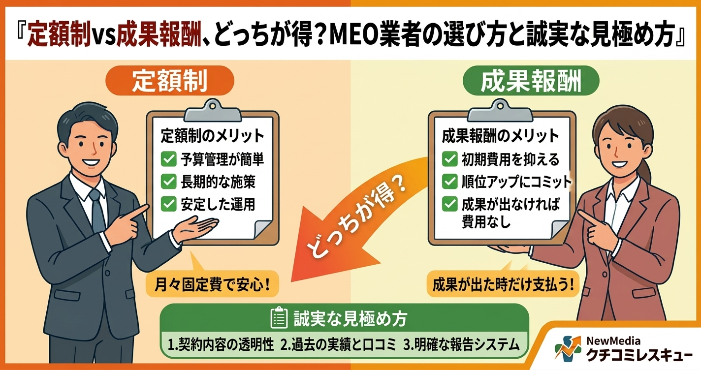 今回は、業界の裏側を知るプロだからこそ言える「定額制vs成果報酬」の真実と、あなたの大切なお店を任せるに足る「誠実なパートナー」の見極め方を徹底解説します。