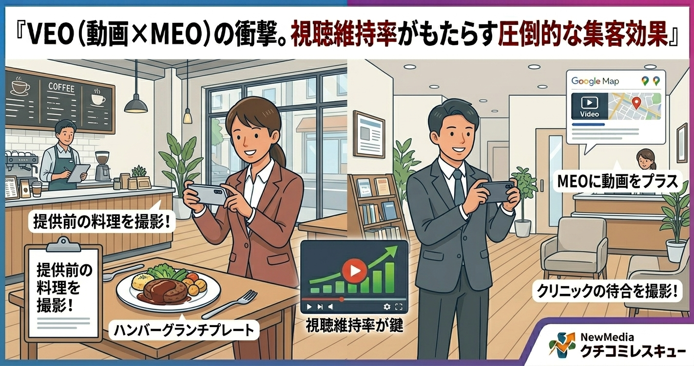 2026年、Googleマップの検索結果で今最も注目されているのが「動画」です。 単なる紹介動画ではなく、MEOと動画を高度に融合させた「VEO(Video Engine Optimization)」が、店舗集客の常識を塗り替えようとしています。