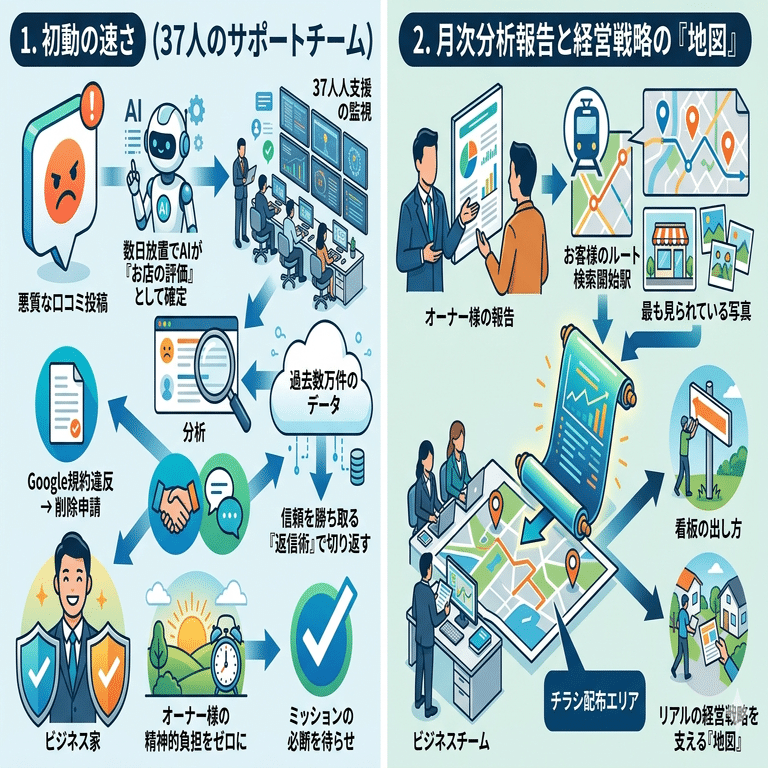 こうした現場の報告が届くたび、37名のメンバーは嬉しい気持ちで胸がいっぱいになります。私たちは、あなたのお店の「外部広報部」であり、理不尽な攻撃から店を守る「デジタル用心棒」です。